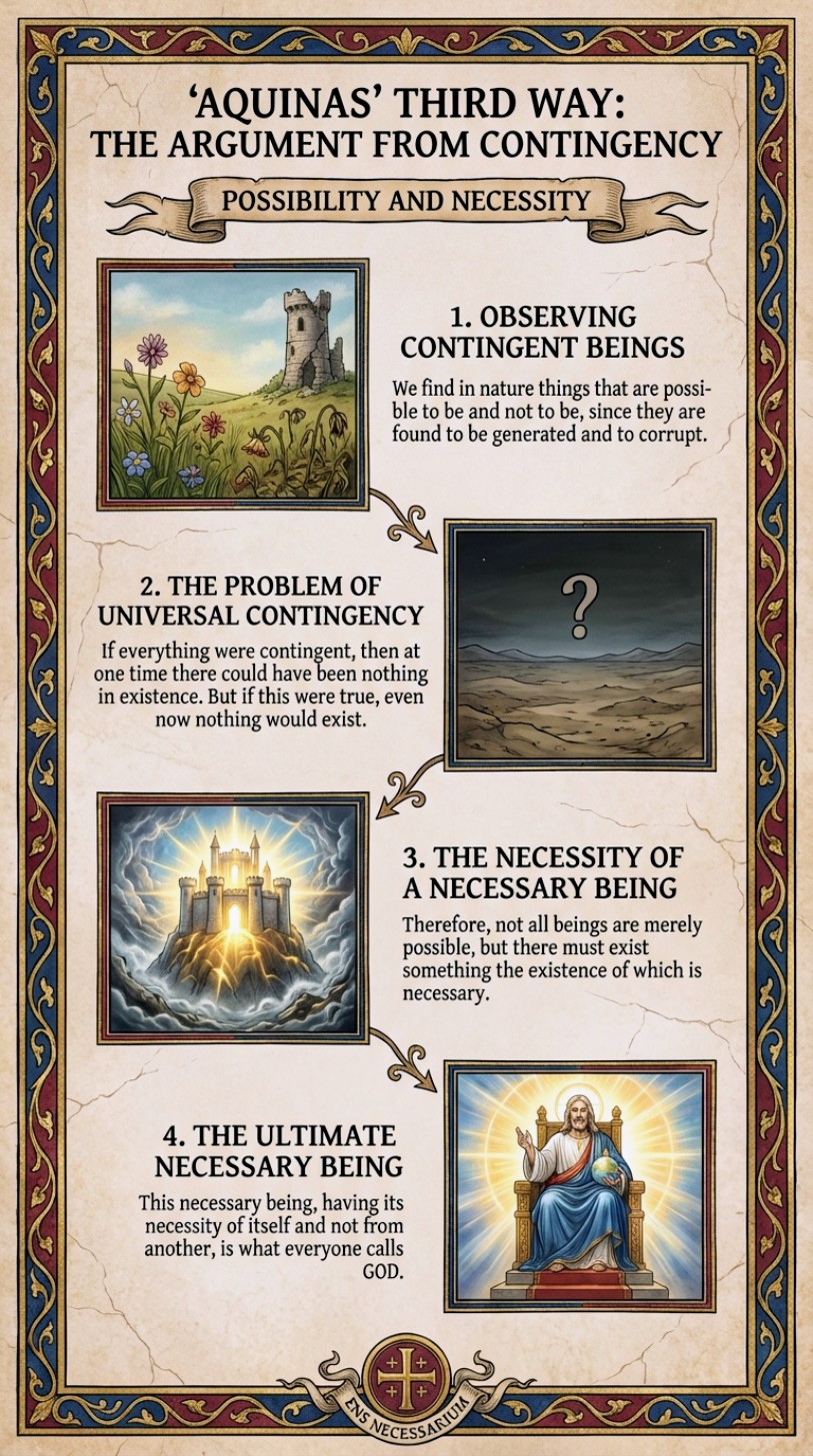 (P5) A necessary being either has the cause of its necessity in itself or from another. Either the necessary being’s existence is explained by its own nature (it exists “of itself”), or it is necessary because something else makes it so.
