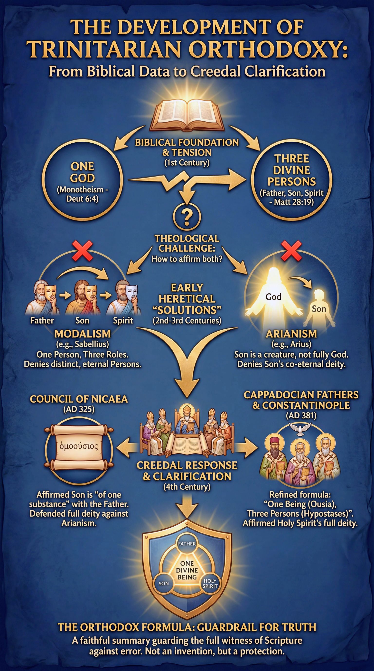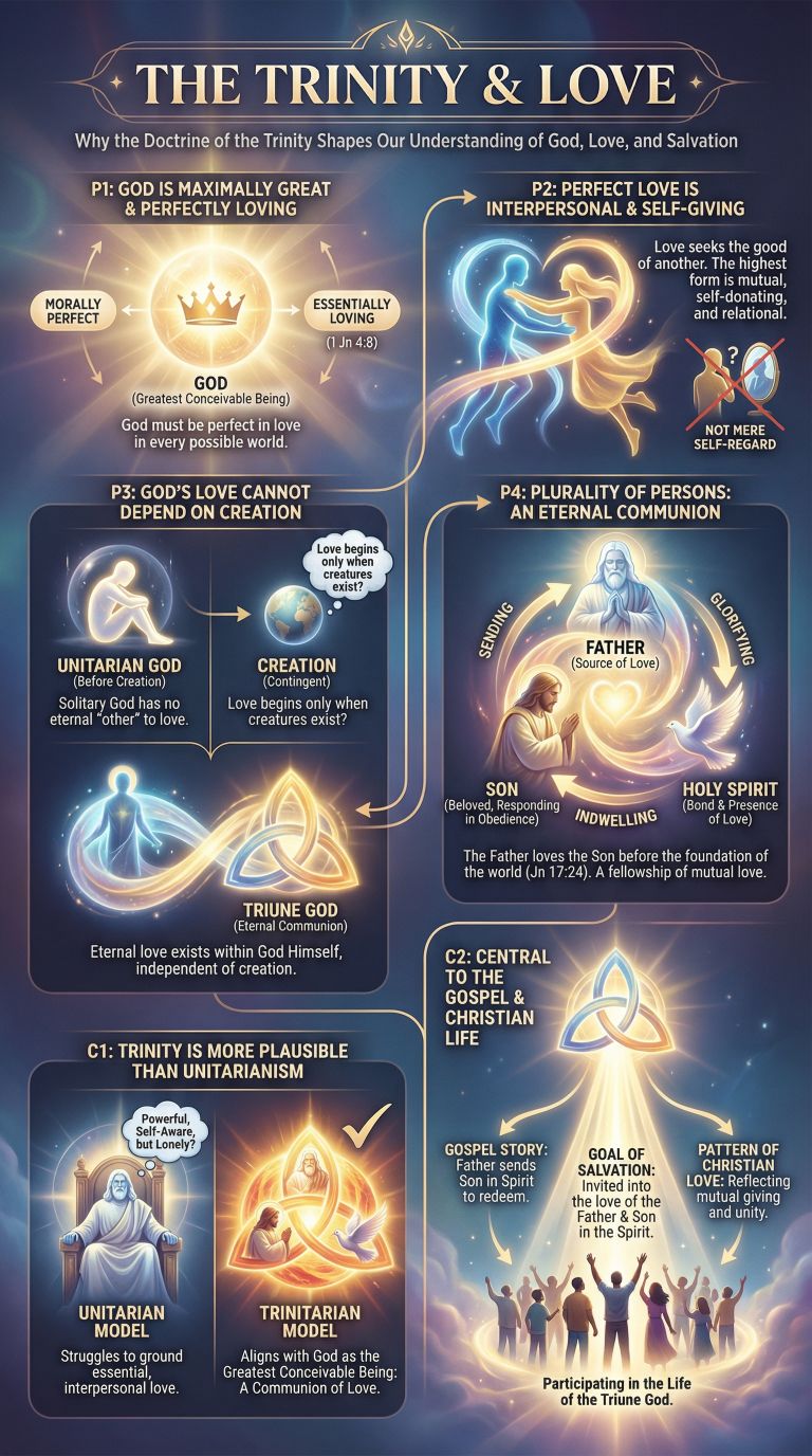 (P3) If the universe has an explanation of its existence, that explanation is a necessary, non-physical, eternal, immaterial cause: God. (1) The explanation cannot be another contingent physical thing. - The universe is the totality of physical reality. Any physical thing would already be part of the universe. - You cannot explain the whole in terms of one of its parts. That would be like trying to explain why a library exists by pointing to one of the books inside it. (2) The cause must be beyond space and time. - Space and time are features of the universe. They came into being with the universe. - The cause of the universe must therefore transcend space and time. It must be timeless (or eternal in a way that is independent of temporal succession). - Think of an author existing outside the story she writes. The author is not bound by the timeline within the story. (3) The cause must be immaterial and non-physical. - Physical stuff (matter and energy) is exactly what came into existence with the universe. - The explanation for physical reality cannot itself be physical. It must be immaterial: not made of matter or energy. (4) The cause must be metaphysically necessary. - Since the universe is contingent and requires an external explanation, what is that explanation? - If the external cause is itself contingent, we simply push the question back: what explains that cause? - To avoid an infinite regress of contingent causes, we must eventually arrive at a being that exists necessarily: a being whose existence is explained by its own nature. - This necessary being is the ultimate foundation of all contingent reality. (5) The only viable candidate is a personal mind. - What could be timeless, spaceless, immaterial, necessary, and yet capable of causing a universe to exist? - Abstract objects (like numbers) are timeless and immaterial, but they are causally powerless. The number 7 doesn't create anything. - The only other option is an unembodied mind: a personal agent with the power to bring things into existence. - A necessarily existing, immaterial, timeless, supremely powerful, personal mind is what classical theism means by "God." (6) A personal cause explains why there is something rather than nothing. - An impersonal force or state existing timelessly and necessarily would have its effects exist timelessly and necessarily as well. - But a personal agent can freely choose to create, explaining why contingent reality begins to exist at a particular "point" (even if time itself begins with that creation). This is what we mean by God: a necessary, eternal, immaterial, supremely powerful, personal Creator of all contingent reality.